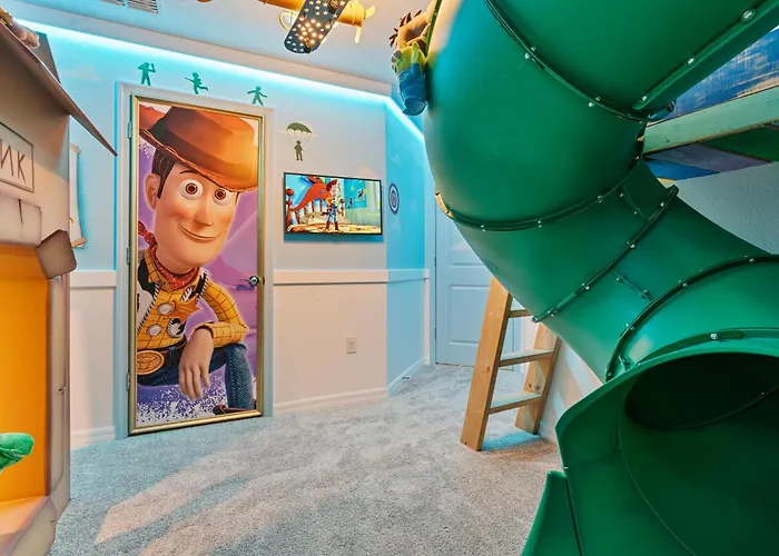 You'll need 45-minute drive to Orlando International airport. The Brand New 10Bdrms At Windsor Cay Orlando features location around a 15-minute ride from West Gate Flea Market.