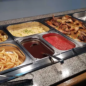 El hotel tiene el comedor, donde sirve un desayuno buffet por la mañana. También puedes visitar un bar en la piscina amueblado con taburetes para piscina, y que sirve bebidas estupendas. El restaurante Royal Oak pub, que ofrece una amplia variedad de platos, está aproximadamente a 550 metros.