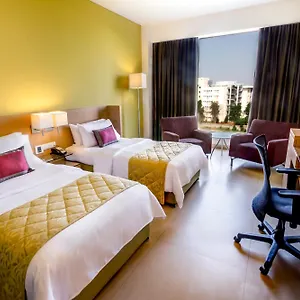 The Radha Regent Electronic City Bangalore features 72 rooms with a flat-screen TV with satellite channels, as well as a mini-fridge-bar, coffee and tea making equipment. They are furnished with spacious decor. Bathrooms come with a separate toilet and a shower, along with a hairdryer and bathrobes. Guests can also enjoy views of the pool.